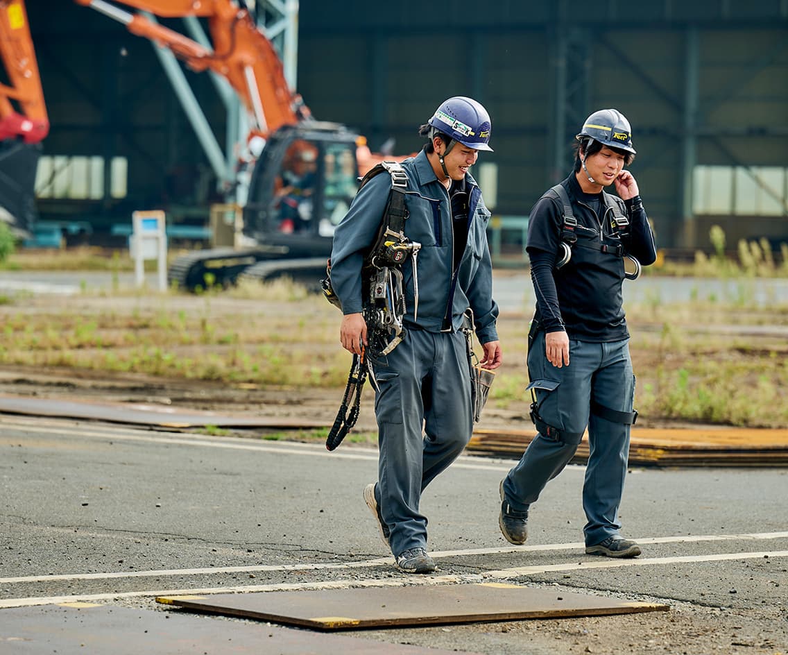 現場管理を担当しています。仕事をする上で大切にしているのは、「周りの状況をよく見ること」「言われたことをそのままやるのではなく、自分で考えて行動すること」です。最初は分からないことばかりでしたが、少しずつ任せてもらえる仕事が増え、「最後までやり遂げられた」と感じた時や、